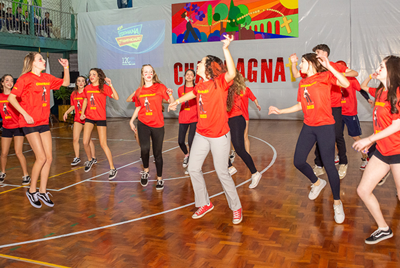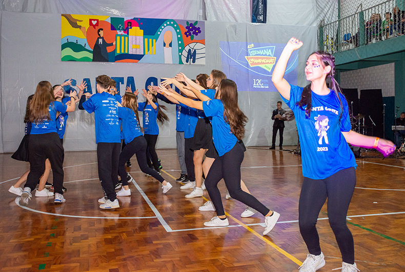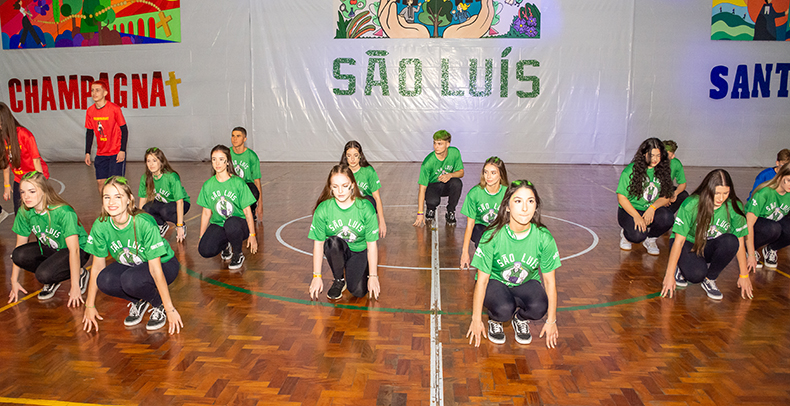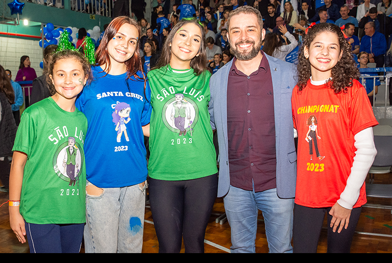 A ex-aluna e prefeita Helena Hermany esteve na abertura da 42ª Semana Champagnat do Colégio Marista São Luís, no começo da noite da última sexta-feira, 30. Com o comando do professor Fábio Luís Schaefer, as equipes Champagnat, Santa Cruz e São Luís se apresentaram com músicas e danças, agitando as torcidas que lotaram o Luisão. A destacar a execução do Hino Nacional e a oração do Pai Nosso.