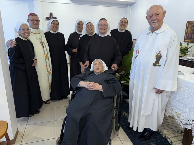 Na missa do domingo passado celebrada pelo bispo dom Itacir Brassiani e o padre Antônio Bremm, foram comemorados os 29 anos do Mosteiro da Santíssima Trindade e o jubileu de prata de Profissão Monástica da Ir. Isabel Teixeira de Sousa | Foto: Ike