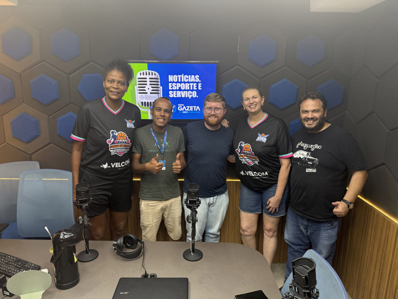 A campeã mundial de basquete feminino de 1994 na Austrália, Alessandra Santos de Oliveira, esteve com William Thiel, Jaime Fredrich, Karina Knak, da Associação Meninas do Basquete de Santa Cruz do Sul, e Roberto Patta, no Programa Grande Resenha da segunda-feira passada, na Gazeta FM 107,9 | Foto: Ike