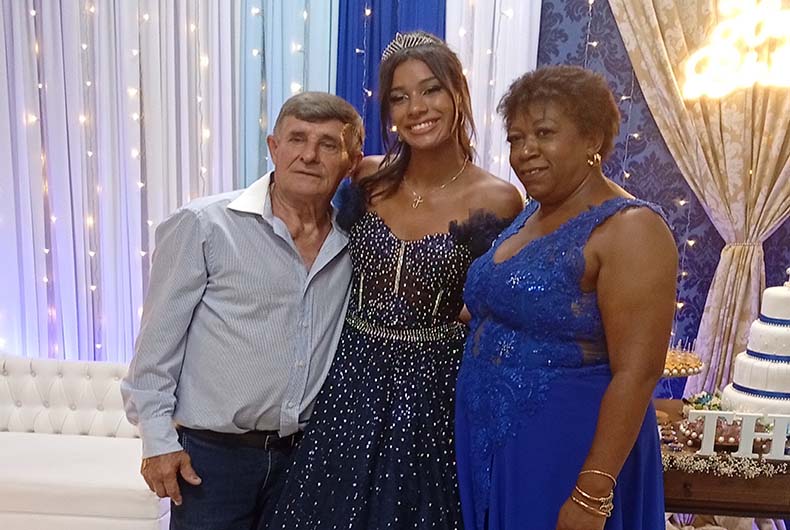Clair Rodrigues e Darci Müller receberam familiares e amigos para comemorar os 15 anos da filha Thais Rodrigues Müller, na sede campestre do Sindicato dos Comerciários.