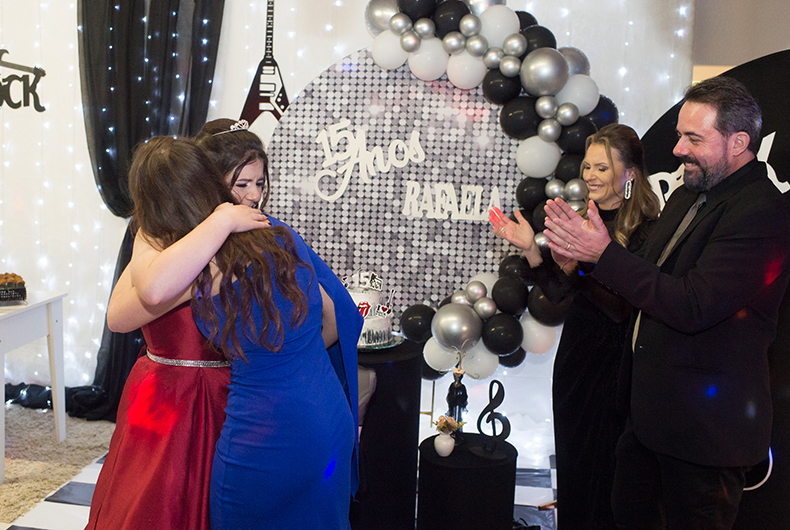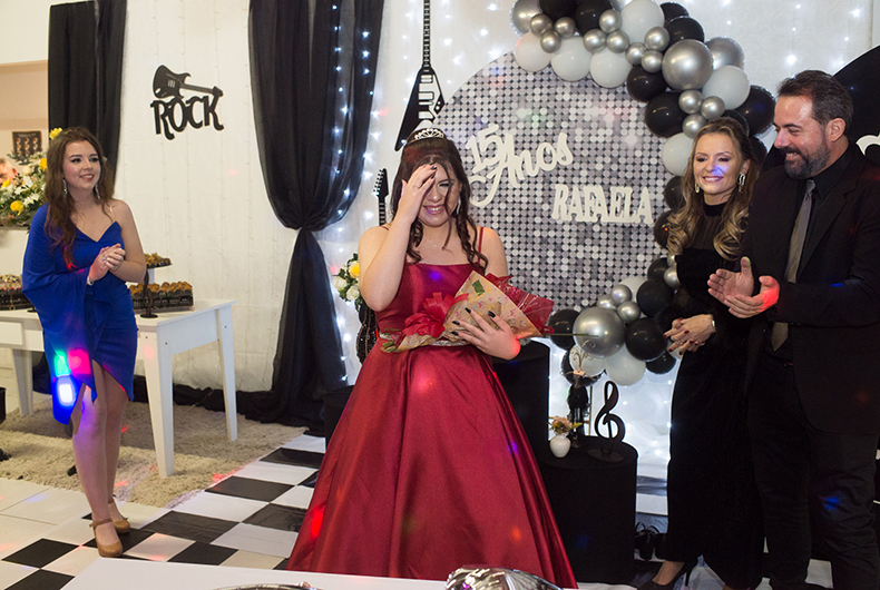 Os pais Ana Voese e Sandro Pereira e a mana Eduarda Voese, com o assessoramento de Rogério Santos, receberam com muita alegria e esmero os familiares e amigos para comemoração dos 15 anos da filha Rafaela Voese Pereira, na cabana rústica da Associação Atlética Philip Morris.