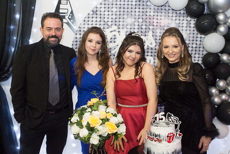 Os pais Ana Voese e Sandro Pereira e a mana Eduarda Voese, com o assessoramento de Rogério Santos, receberam com muita alegria e esmero os familiares e amigos para comemoração dos 15 anos da filha Rafaela Voese Pereira, na cabana rústica da Associação Atlética Philip Morris.