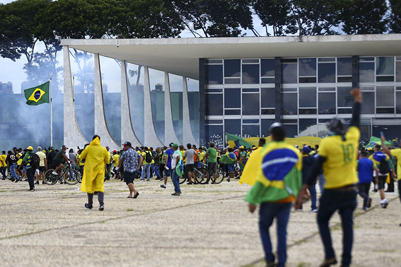 Eles captaram os momentos que antecederam a depredação do Supremo e mostram a ação dos agentes da Polícia Judiciária para tentar conter os manifestantes, que tentaram entrar simultaneamente pela frente e pelo lado do edifício-sede.