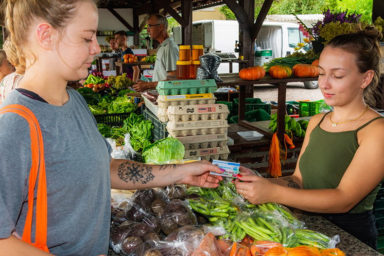 Na banca ao lado, outra produtora rural e estudante de agronomia, Gabrieli Goetze, de 18 anos, sempre ajuda o vô Normindo na feira. “Meu vô é feirante há mais de quarenta anos. O cartão é uma novidade para ele, mas ele ficou feliz porque agora vai vender ainda mais”, afirmou.