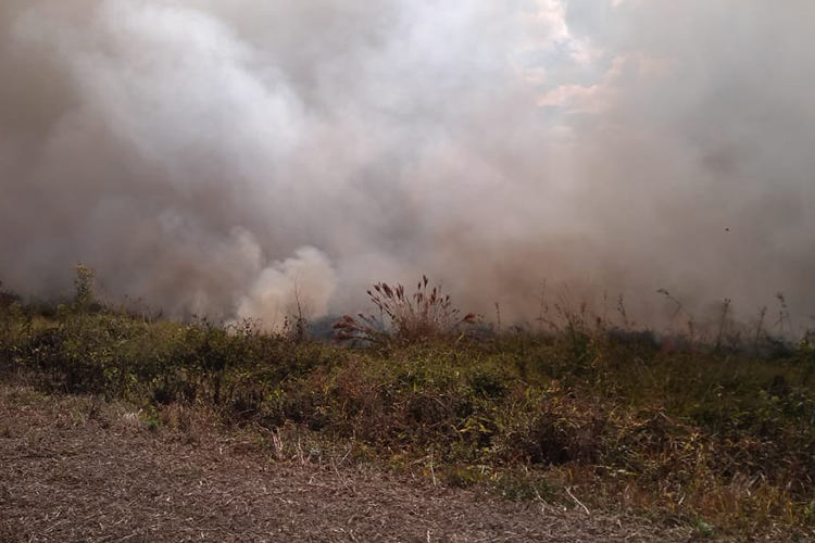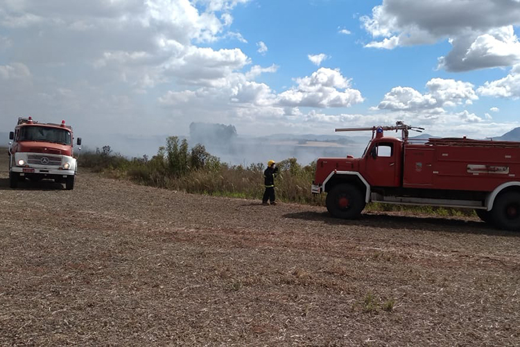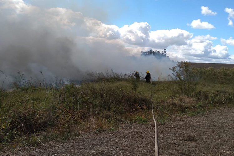 O fogo queimou mato e uma lavoura de soja, já colhida. Os bombeiros utilizaram cerca de 10 mi litros d’água para controlar as chamas.