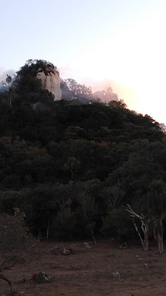 Segundo informações dos bombeiros do município, o local, com cerca de 190 metros de altura, é ponto turístico e recebe muitos visitantes. Nesta sexta-feira, 1°, algumas pessoas fizeram churrasco no topo do morro e não teriam apagado corretamente as chamas. Com a seca e o vento, o fogo acabou se alastrando.
