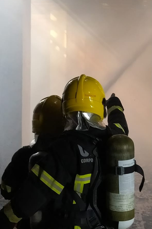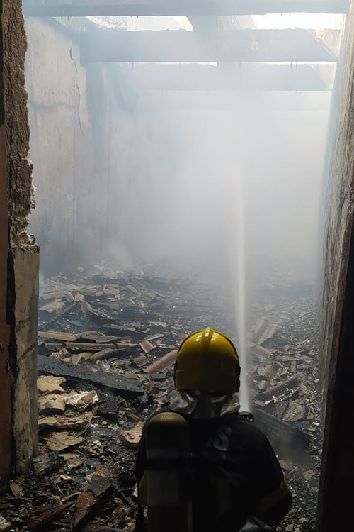 O Corpo de Bombeiros de Rio Pardo trabalha no combate a um incêndio em uma planta frigorífica desativada, na manhã desta terça-feira, 16. A estrutura fica no Bairro Nossa Senhora do Rosário.