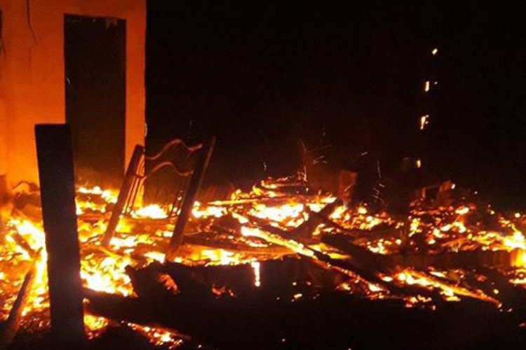 A residência foi destruída pelo fogo. O único morador da casa não estava na hora do sinistro. Conforme os bombeiros, as causas do incêndio são desconhecidas.