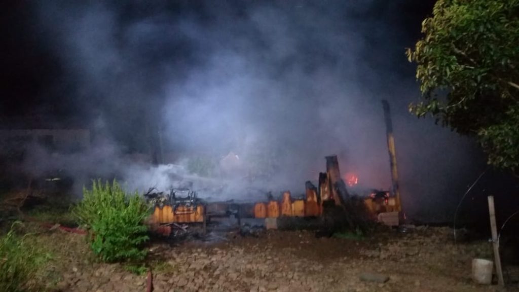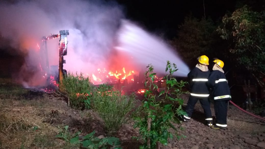 Um chalé foi totalmente destruído pelo fogo na noite dessa terça-feira, 23. O caso ocorreu em Candelária. O incêndio teria iniciado por volta das 23 horas.