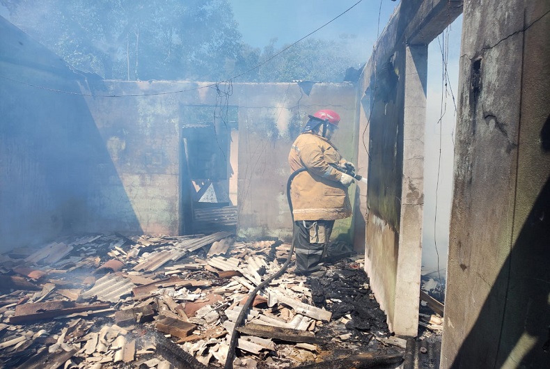 O Corpo de Bombeiros Voluntários de Candelária atendeu, no início da tarde deste sábado, 17, uma ocorrência de incêndio em duas casas anexas, um chalé e outra de alvenaria, em Sesmaria do Cerro, no interior do município.