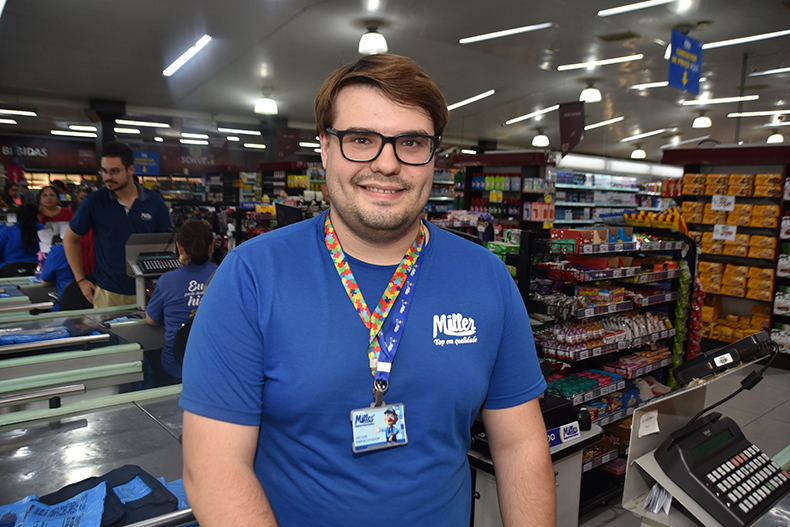 Um dos empreendimentos que ultrapassaram o número de contratações estabelecido por lei é o Miller Supermercados. Ao todo, são 26 pessoas com deficiência, incluindo autistas. Eles trabalham em diferentes setores das unidades, seja na área de frutas, no caixa ou no empacotamento de produtos.