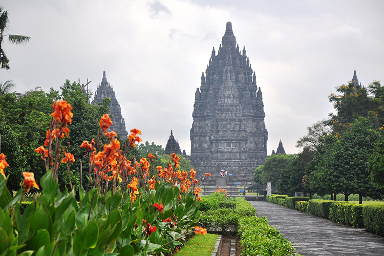 Mais próximo à cidade, o complexo hindu Prambanan foi erigido no mesmo período. Os templos são dedicados a Trimurti, tripla divindade representada pelo criador Brahma, o sustentador Vishnu e o transformador Shiva. Estão inseridos em um bem cuidado e florido parque.