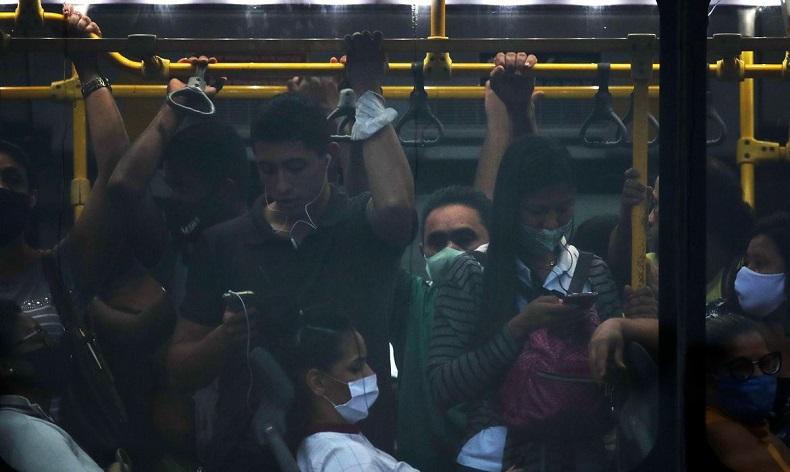 Passengers travel on a public bus amid the coronavirus disease (COVID-19) pandemic, in Rio de Janeiro, Brazil, November 18, 2020. Picture taken November 18, 2020. REUTERS/Ricardo Moraes