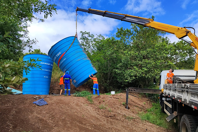 Os novos reservatórios de fibra tem capacidade de 25 mil litros cada