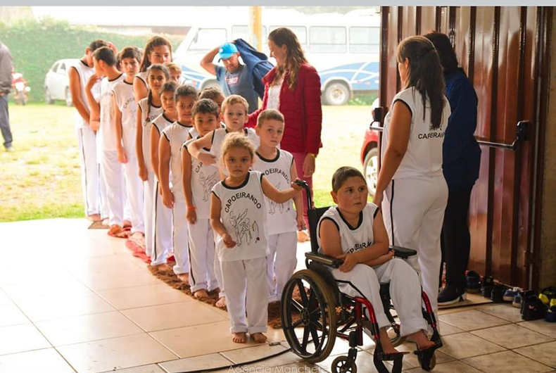 A mãe de Luis também conta que ele sempre foi um menino mais ativo, contudo, a inserção em outros esportes foi mais difícil antes da participação por meio do ARISE. “Ele sempre gostou muito de futebol, de brincar com a bola, mas sempre enfrentava dificuldades por conta da locomoção. Já na capoeira, a cadeira de rodas é uma aliada”, explica.