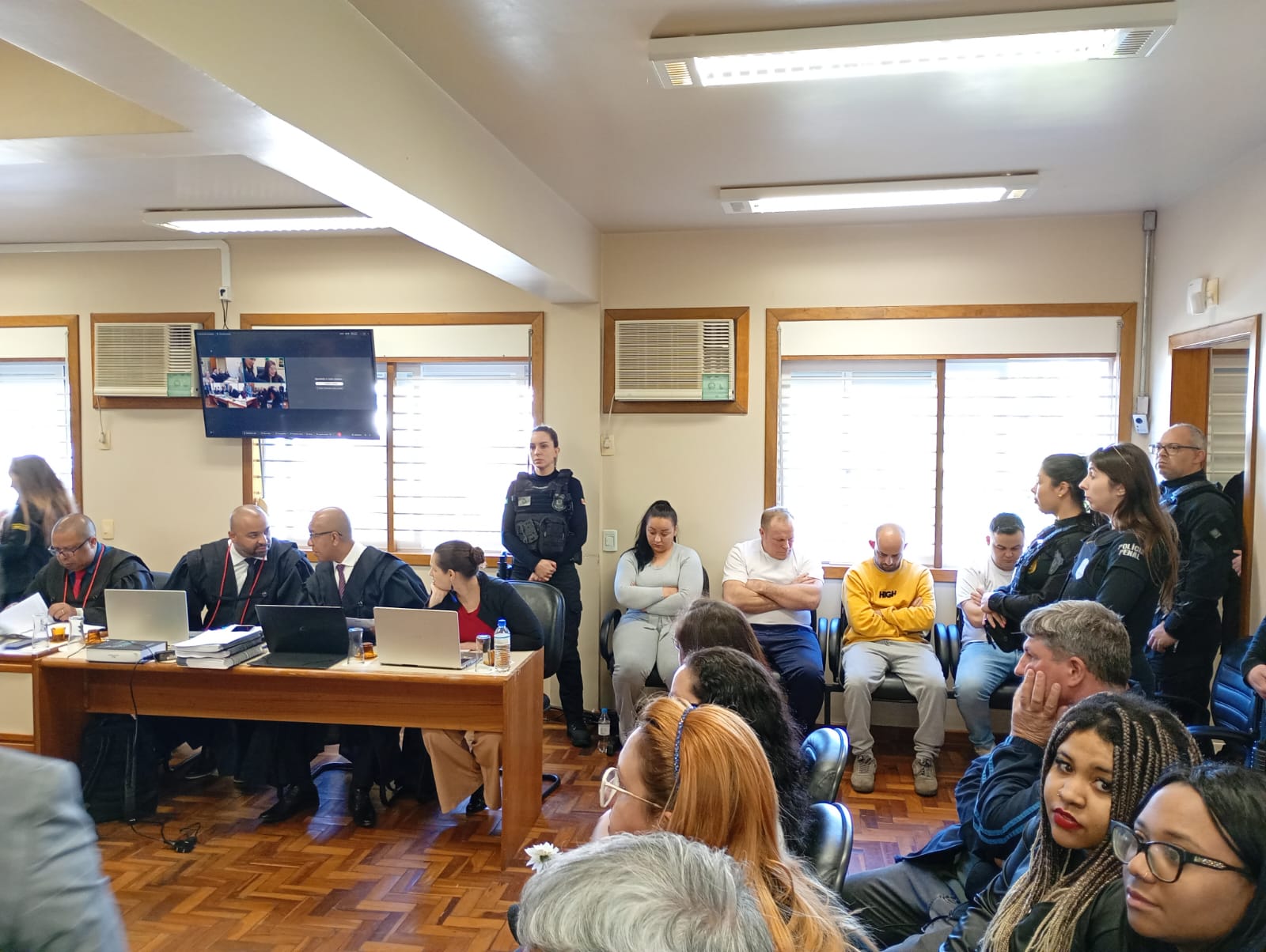 A acusação contra os réus é feita pela promotora Maria Fernanda Cassol Moreira e a defesa, pelos advogados Guilherme de Souza Centeno (Carlos Rech), Paulo Cesar da Silva (Mauricio Schmitz), Maira Line Costa (Norton Souza) e Felix Rosalino Gomes de Avila (Tamara Silva). A família da vítima no júri está representada pelo advogado Marco Antônio Iser, que atua como assistente de acusação durante o julgamento. A sessão é presidida pela juíza Fernanda Resende Spenner.