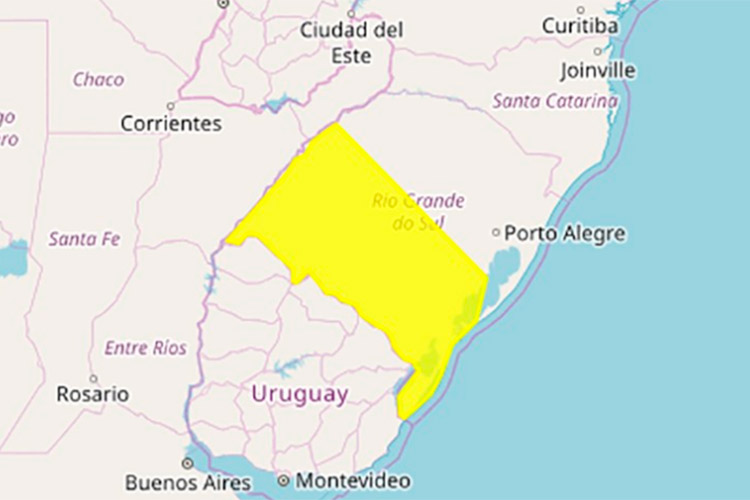 Um aviso amarelo de tempestade, o terceiro mais forte de uma escala de quatro, foi emitido nesta quarta-feira, 29, pelo Instituto Nacional de Meteorologia (Inmet) para o Rio Grande do Sul. As regiões Sul e Oeste serão as mais afetadas. O boletim é válido até 9 horas desta quinta-feira, 30.