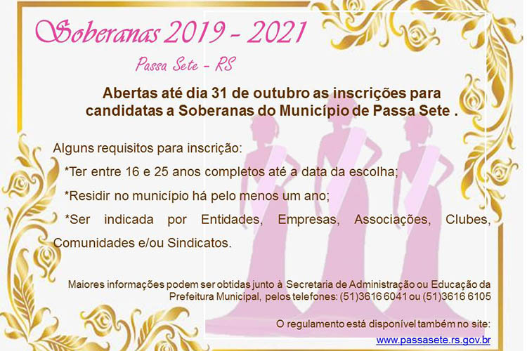 Maiores informações podem ser obtidas junto a Secretaria de Educação ou Administração com a comissão organizadora do evento, ou pelos telefones: (51) 3616-6105, (51) 3616-6041, ou pelo site http://passasete.rs.gov.br, onde consta o regulamento.