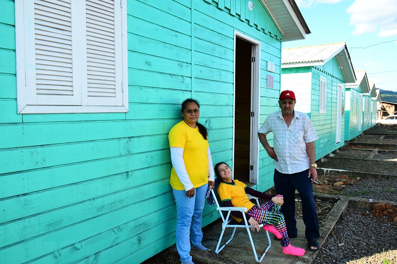Agora, Alcenira e Floriano iniciam uma nova fase. A família foi uma das 34 contempladas com um novo lar, localizado na Rua Reginaldo Hegele, Bairro Rincão Comprido. Acima da numeração, cada residência recebeu uma palavra de esperança. E a do casal foi justamente “Alegria”, representando o recomeço após a catástrofe. “Estou alegre por ter um novo lar”, disse Alcenira.