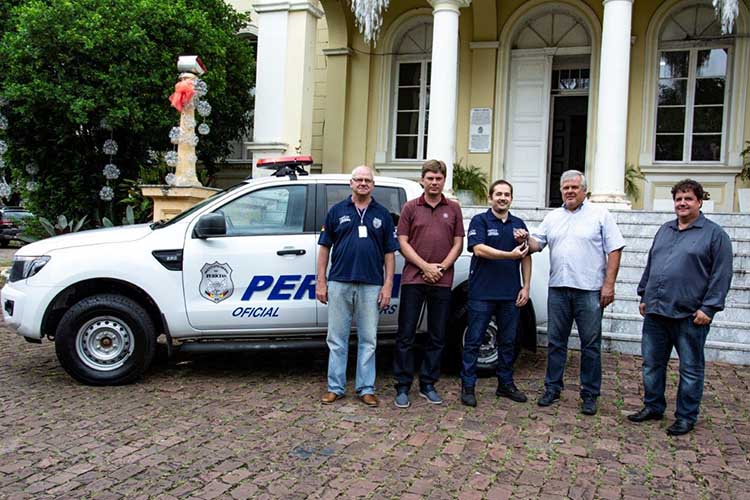 Foi entregue na tarde desta sexta-feira, 11, uma caminhonete Ranger 4 x 4, seminova, ao posto regional do Instituto Geral de Perícias (IGP). O veículo, pertencente ao Estado, foi recuperado pelo Consepro que investiu R$ 13 mil de sobras do Estacionamento Rotativo Pago, para deixá-lo em condições de uso. Do ato, realizado em frente ao Palacinho, participaram os secretários municipais de Segurança, Defesa Civil e Esporte, Henrique Hermany, e de Transportes e Serviços Urbanos, Gérson Vargas, o presidente do Conselho Comunitário Pró-Segurança Pública (Consepro), Guido Fernando Hermes, e o coordenador regional do IGP, Maiquel Luís Santos.