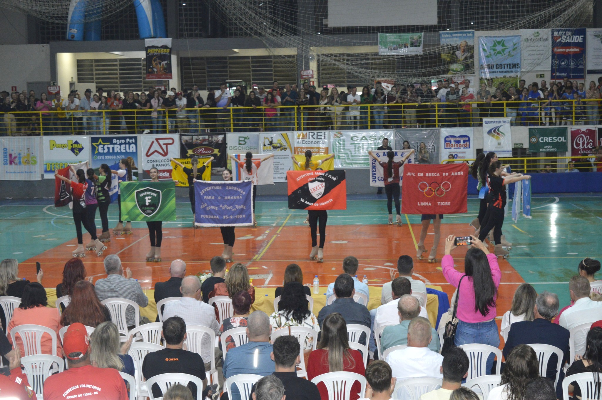 A cerimônia de abertura ocorreu na noite da última quarta-feira, 12 de junho, levando grande público ao Ginásio Tigrão, que pode conferir a tradicional solenidade, dando oficialmente por aberto o maior evento do gênero do Sul do país. Na ocasião, o protocolo contou com apresentação de patinação artística, entrada das delegações das Juventudes, entoação dos hinos, juramento do atleta, acendimento do fogo simbólico, momento espiritual e o pronunciamento de autoridades.