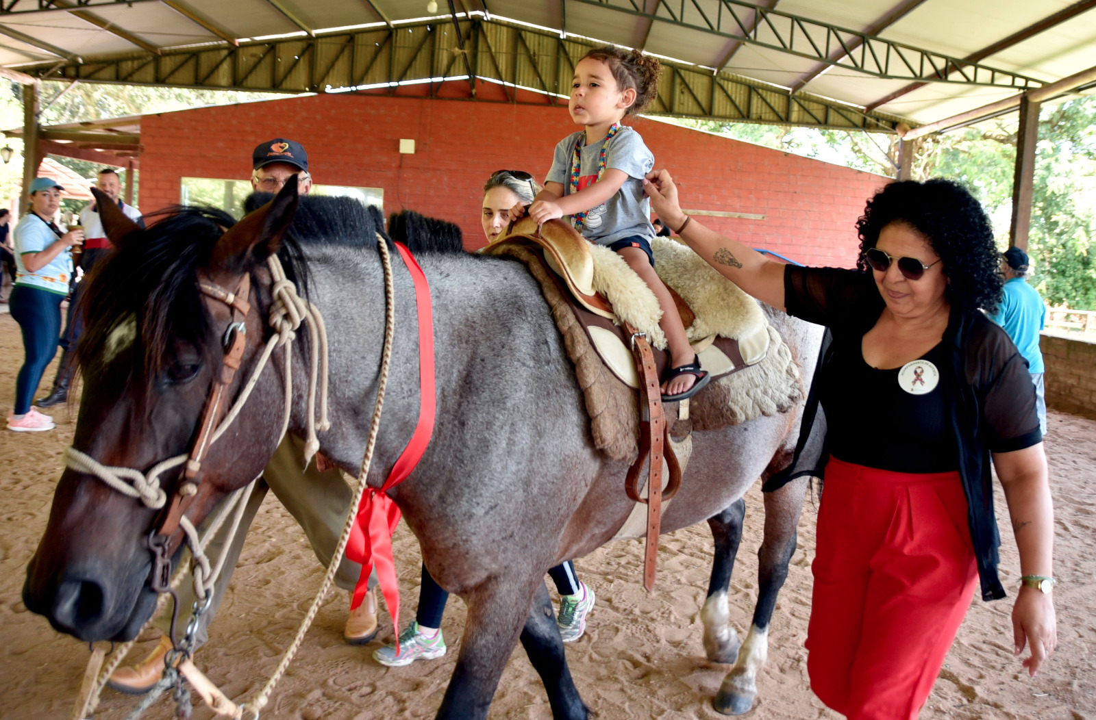 Bartolomeu de Oliveira, de 3 anos, é um dos pequenos atendidos pelo Girassol que esteve no evento ontem. Acompanhado da avó, Susana Rodrigues, 53 anos, ele participou pela primeira vez de uma sessão de equoterapia, experiência que trouxe momentos de aprendizado e emoção. Susana destacou a felicidade do neto na atividade. “No início, ele não queria ir, mas depois amou. Foi muito bom ver o quanto ele ficou à vontade. Nós nos sentimos seguros em deixar ele participar”, vibrou.