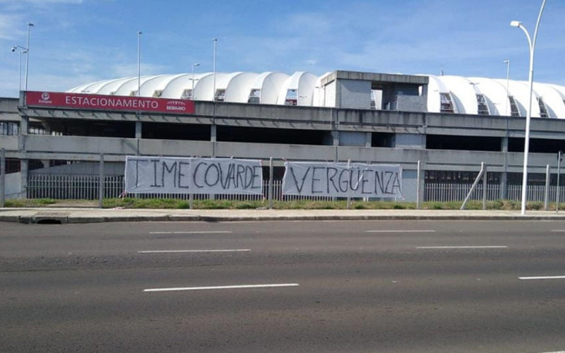 Torcedores colorados fixaram faixas de protesto no entorno do Beira-Rio para manifestar a insatisfação com a sequência negativa da equipe. “Time covarde. Vergüenza (vergonha, em espanhol), diziam as faixas, enquanto cerca de 20 torcedores batiam palma e cantavam “vergonha, time sem vergonha”, Avenida Edvaldo Pereira Paiva, em frente ao CT Parque Gigante.