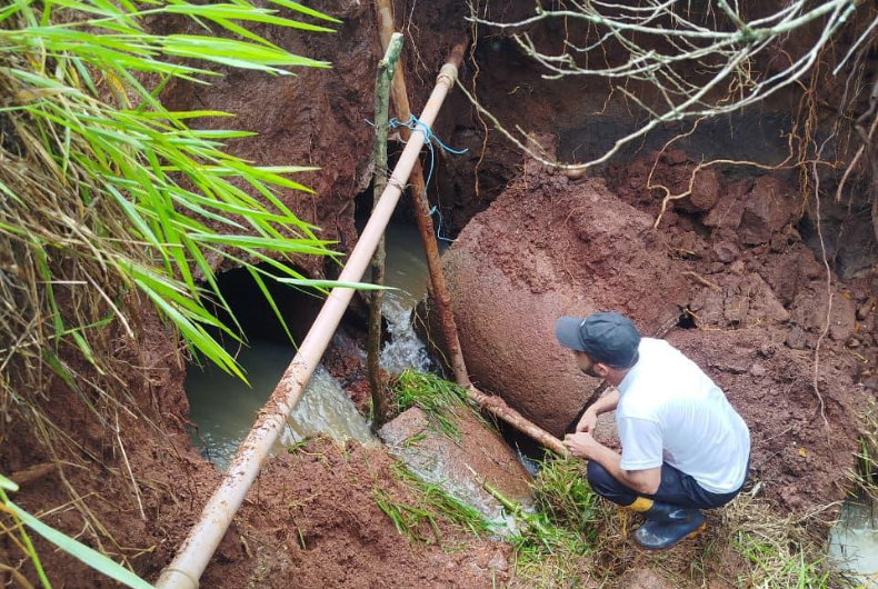 Após o elevado volume de chuvas e os fortes ventos que atingiram General Câmara e região entre a sexta-feira, 7, e a madrugada de sábado, 8, servidores da Prefeitura e da Codesa realizaram vistorias e executaram a manutenção de um bueiro na localidade de Lagoão, no distrito de Boqueirão. O local sofreu um desmoronamento parcial devido ao grande volume de chuva.
