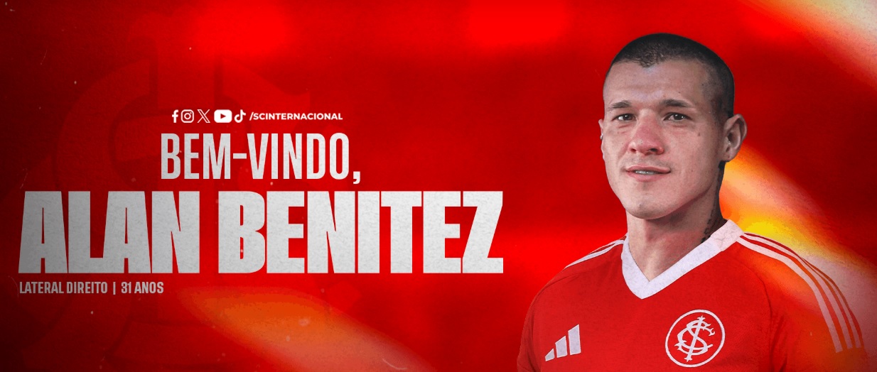O Internacional firmou pré-contrato com o lateral-direito Alan Benítez. O atleta paraguaio, de 31 anos, assinou vínculo com duração até dezembro de 2026 e será oficialmente jogador colorado a partir de 1º de julho. Benítez, que estava no Cerro Porteño, chega para reforçar o grupo nas disputas do Campeonato Brasileiro, Copa do Brasil e Libertadores na sequência da temporada 2025.