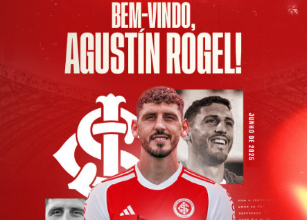 O Internacional anunciou a contratação do zagueiro uruguaio Agustín Rogel, de 26 anos, nesta quarta-feira, 7. Ele chega por empréstimo até julho de 2025, vindo do Hertha Berlin, da Alemanha.