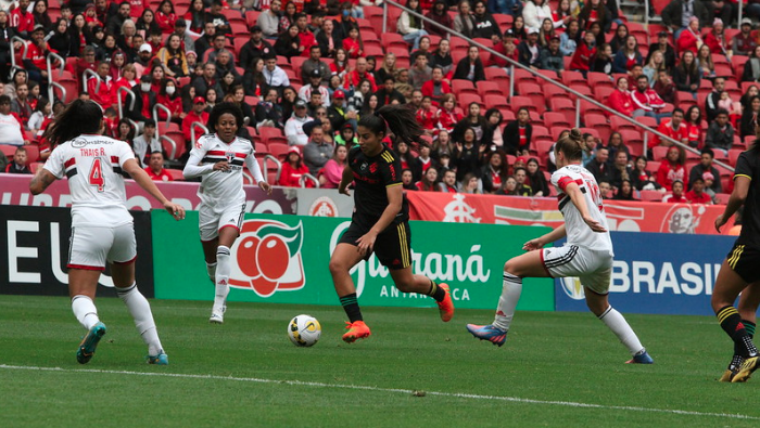 O Internacional empatou com o São Paulo em 1 a 1 no primeiro jogo pela semifinal do Brasileirão realizado no domingo, 28. Rafa Travalão abriu o placar no primeiro tempo para as paulistas e Lelê igualou tudo na etapa final para as Gurias Coloradas diante de 7.025 torcedores, o maior público para jogos da equipe feminina no Beira-Rio.