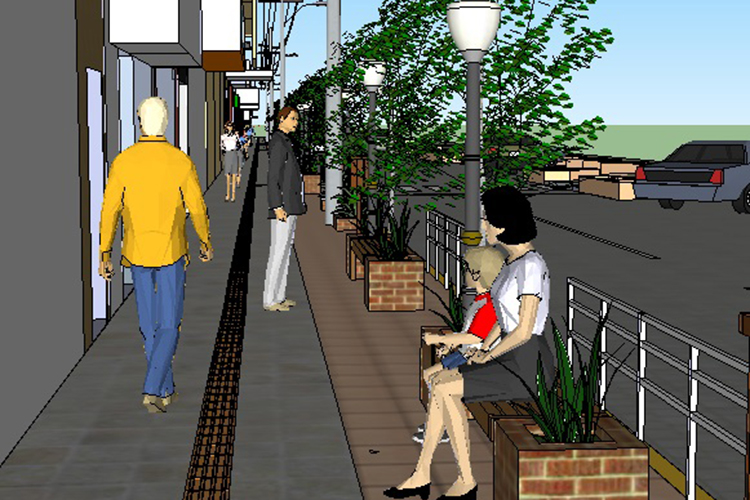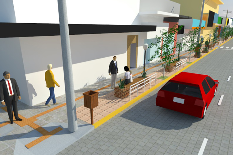 “A opção se deve pelo fato de entenderem que os estacionamentos são importantes para eles”, explica a arquiteta. A proposta 01 contempla 10 vagas de estacionamento e mais uma para Portadores de Necessidades Especiais, uma vaga de carga/descarga, todas na quadra que compreende entre a Travessa São Sebastião até a esquina com a General Osório.