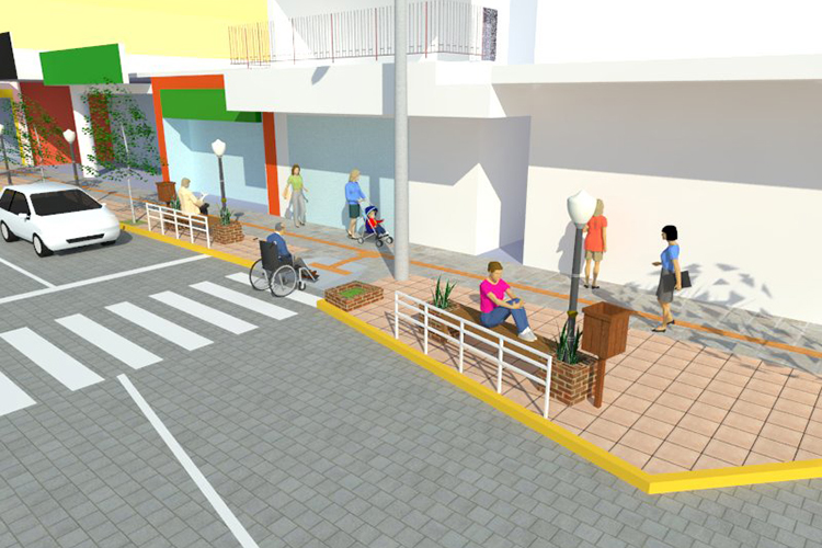 Já ao longo dos cerca de 170 metros do Calçadão – desde a Jacob Becker até a General Osório-, serão dispostos 12 bancos e 30 luminárias do lado esquerdo de quem desce. Também será realizada a retirada das muretas das floreiras, para dar mais amplitude, e colocação de grades onde houver bancos. A calçada para passeio será de basalto e lajotas de concreto – material de maior durabilidade, e dos atuais 5,8 metros de largura, ficará entre 3,50 metros a 3,20 metros de largura.