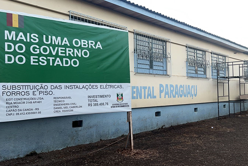 As obras de reestruturação da Escola Estadual de Ensino Fundamental Paraguaçu, no Bairro Leopoldina em Vera Cruz, iniciaram no último mês. O investimento de mais de R$389 mil, através do programa Lição de Casa do Governo do Estado, tem possibilitado a reforma elétrica da instituição, além da troca de forros e pisos em algumas salas de aula.