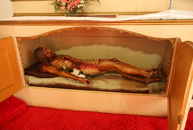 No templo, também há pinturas murais internas feitas por especialistas italianos, possivelmente na técnica de afresco, forro em madeira policromada com destaque para as imagens dos quatro evangelistas (Mateus, Marcos, Lucas e João), e de Maria e Jesus Cristo, a imagem articulada em cedro policromado do Senhor Morto – Jesus Cristo na Cruz – e um crucifixo em madeira policromada e mausoléu do Barão do Triunfo (monumento funerário onde esteve sepultado o general Andrade Neves, militar rio-pardense do século 19).
