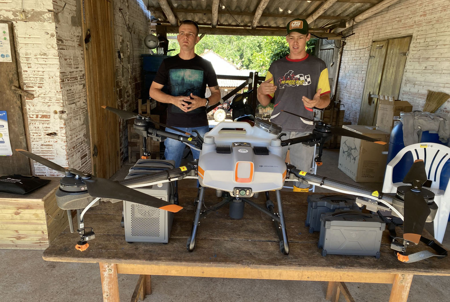 Durante a apresentação do equipamento na propriedade da família, os irmãos Arnildo e Alex Aretz contaram que a ideia surgiu há algum tempo, mas foi a partir de maio deste ano que a iniciativa se consolidou. “Já tínhamos visto a importância do drone pulverizador na agricultura e que seria de grande utilidade para os agricultores locais”, explica Arnildo. A partir de então, os irmãos buscaram informações técnicas e a disponibilidade do pulverizador na região, e fizeram uma análise de mercado.