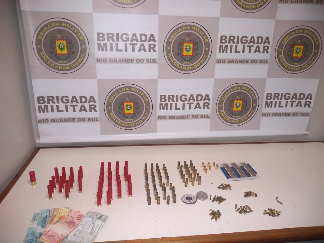 Com apoio de guarnições de serviço de Candelária foram realizadas buscas aos objetos dispensados. Ao todo, foram encontradas 202 munições dos mais diversos calibres, todas intactas, um estojo com cem espoletas, R$ 430,00 em dinheiro e mais um cheque de R$ 200,00, e um celular. Foi dada voz de prisão aos homens e eles foram encaminhados à Delegacia de Polícia de Candelária para andamento na ocorrência.