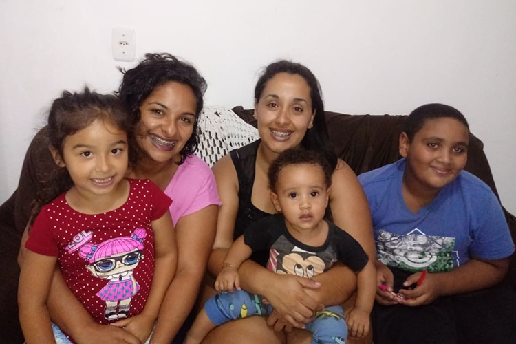 Família que Laura irá conhecer: Sara no colo de Cristiana e Lisiane com Andrei e Bernardo