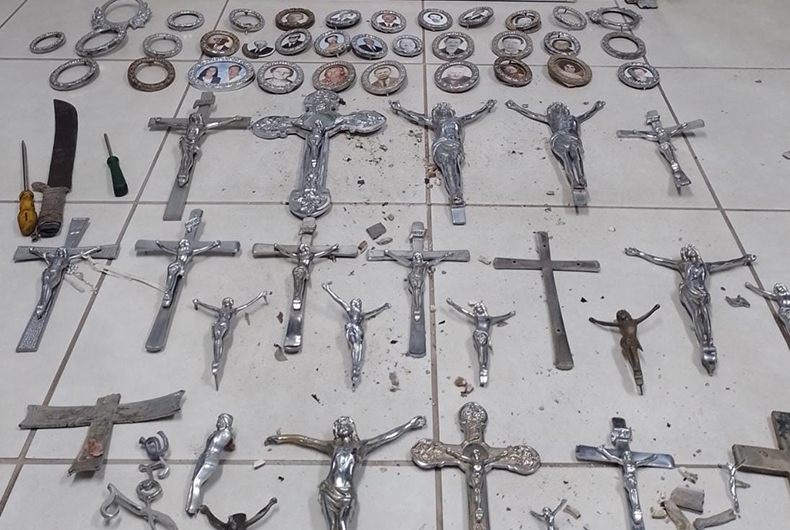 No porta-malas do veículo foram encontrados 25 crucifixos e 34 fotos com moldura metálica, adornos típicos de sepulturas e possivelmente furtados. Também havia no carro duas chaves de fenda e um facão, possivelmente ferramentas usadas nos crimes, que foram apreendidas.