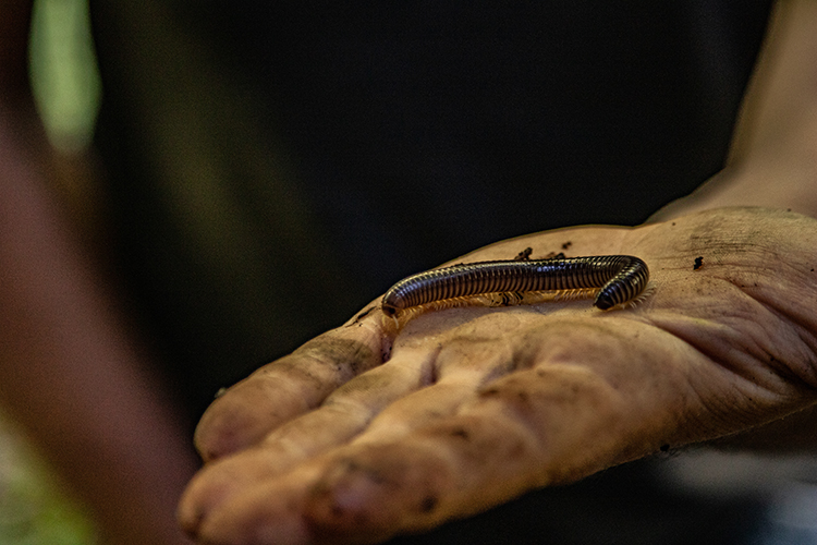 Um dos “segredos” da produtividade das bananas de sua propriedade foi a adoção de práticas de manejo. Uma delas, inclusive, chama a atenção de pesquisadores da Universidade Federal de Santa Maria (UFSM) – a introdução do piolho de cobra, inseto parecido com uma centopeia que trabalha no solo e produz material orgânico que serve como adubo, mantendo também a umidade do local.