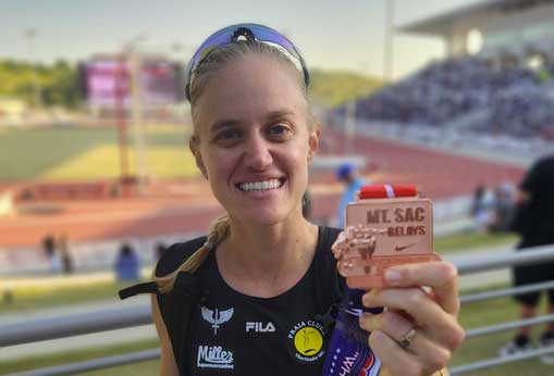 A atleta do Praia Clube/Miller/Certel/Florestal/Fila, Jaqueline Weber, disputou os 800 metros e conquistou o bronze com o tempo de 2min03 na tradicional prova Mt. SAC Relays, em Walnut, California.