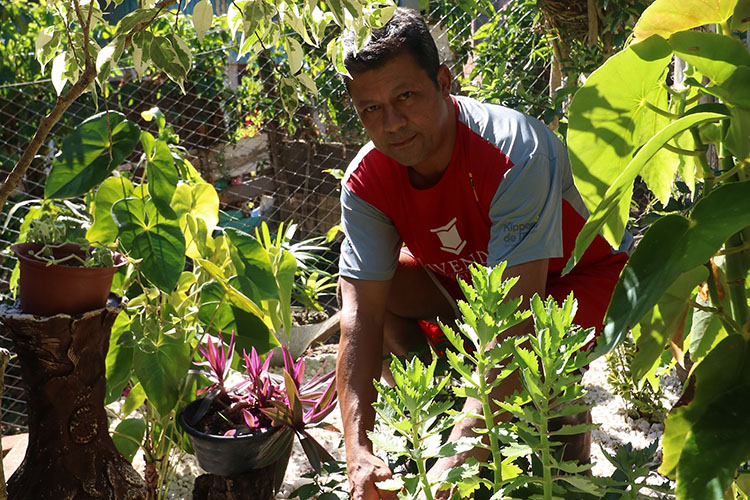 A dedicação aos afazeres do pátio é total, como explica. “Sempre que estou em casa e tenho um tempo livre, estou mexendo com a terra ou podando um galho aqui e outro ali. Não gosto de ver as coisas se acumularem ou ficarem fora da ordem. Cuido de todo o terreno, porque não adianta enfeitar somente a frente da casa e descuidar dos fundos.”