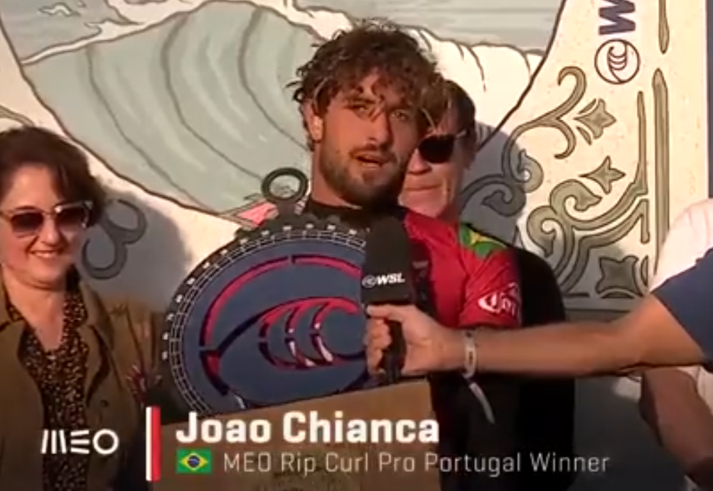 O brasileiro João Chianca, de 22 anos, foi campeão da etapa de Peniche, em Portugal, da World Surf League (WSL), nesta terça-feira, 14. Ele superou o australiano Jack Robinson, líder do ranking com 23,885 pontos. Chianca é o vice-líder com 22,170 pontos. A próxima etapa será em Bells Beach, na Austrália, entre 4 e 14 de abril.