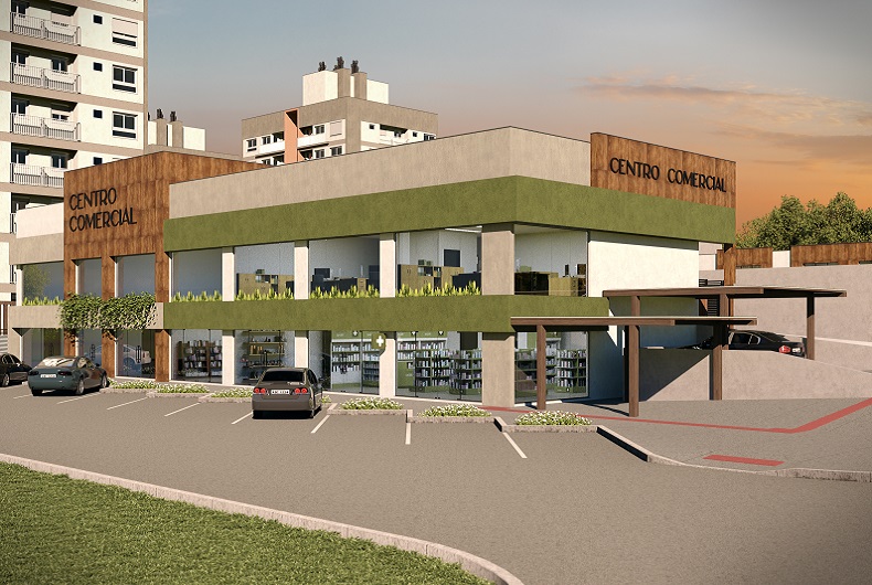 Centro Comercial é parte da infraestrutura também disponível aos moradores do bairro, que terá serviços de farmácia, academia, lavanderia, restaurante e cafeteria, entre outros