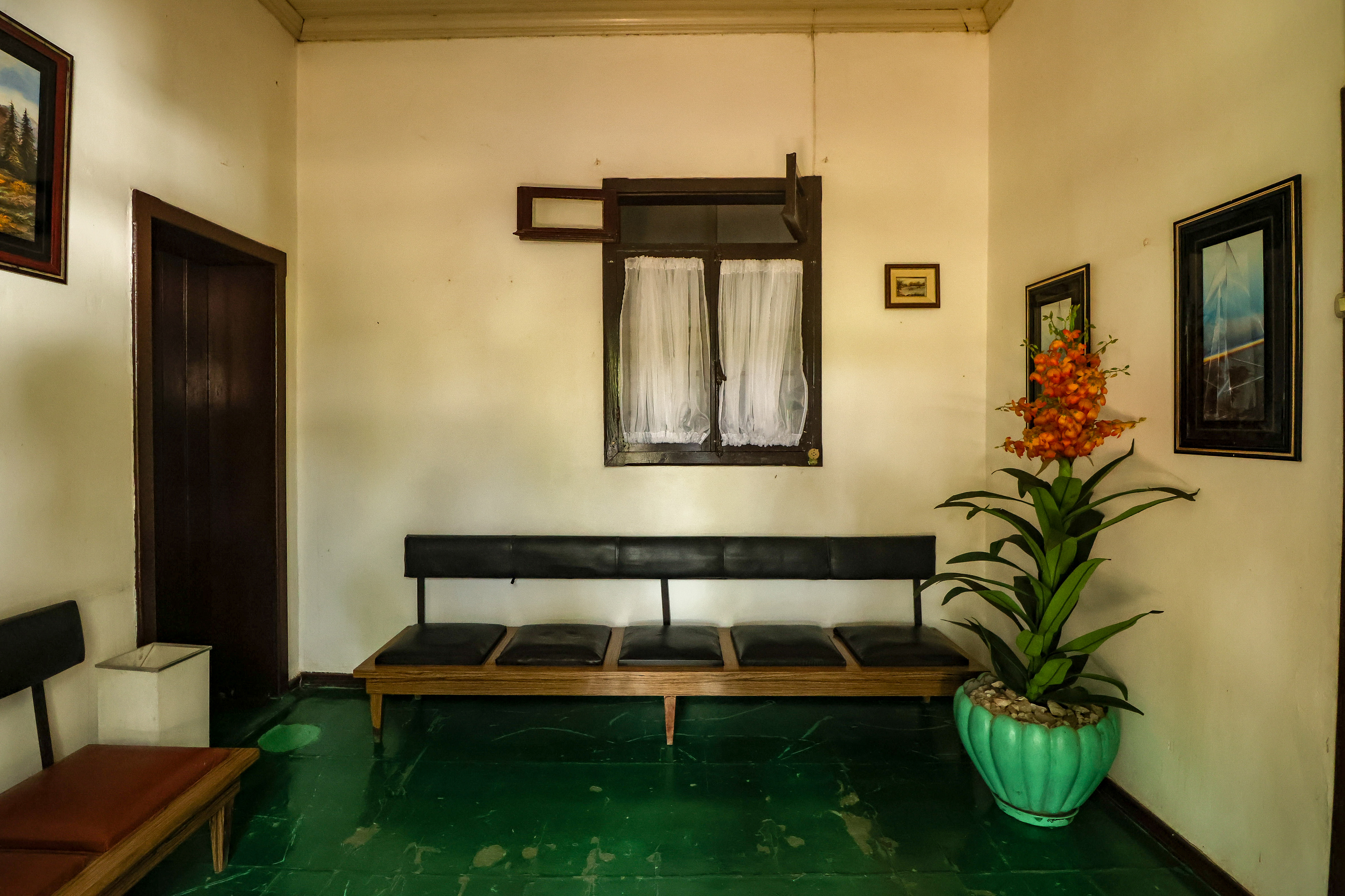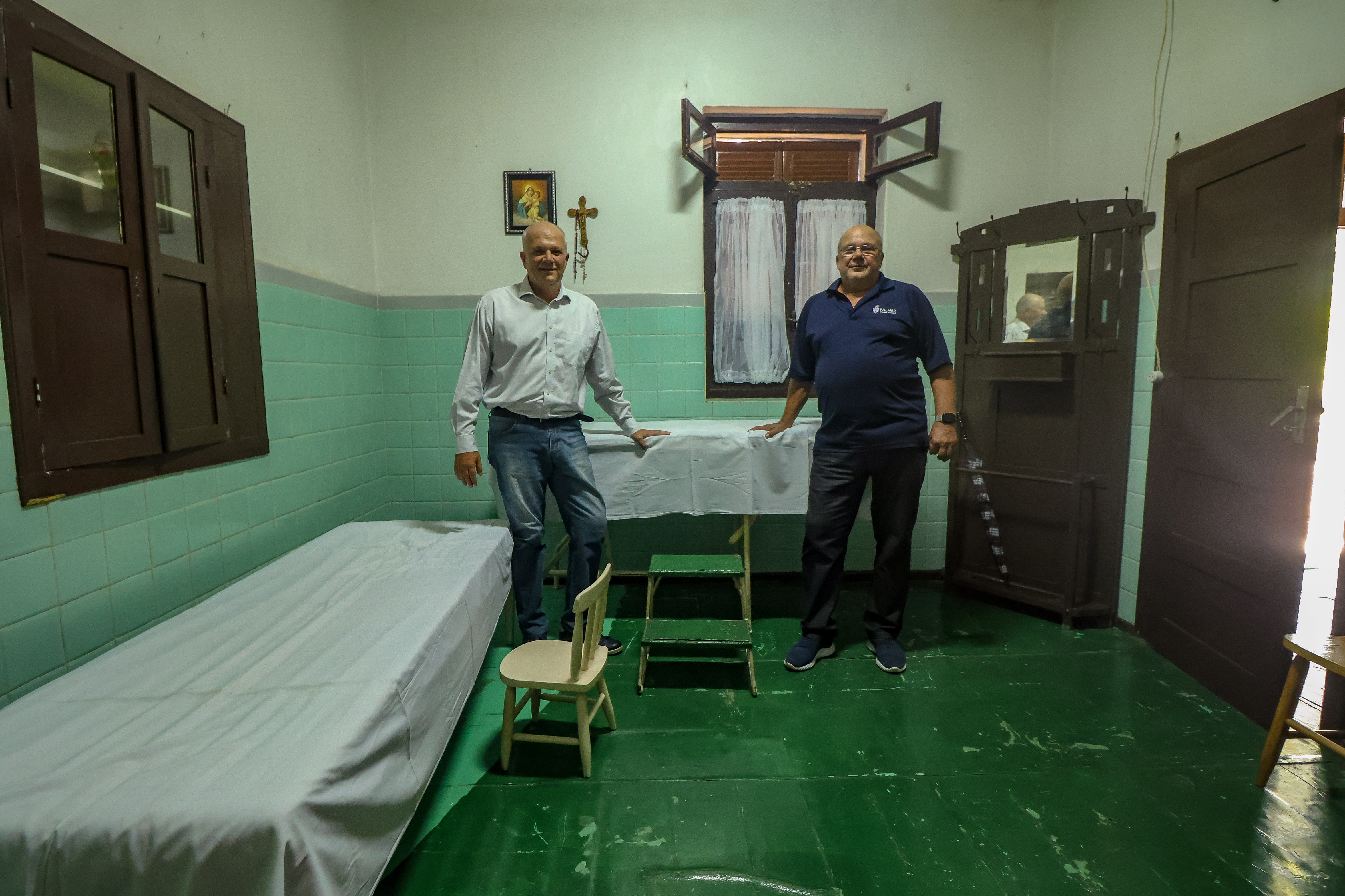 Seguem no quintal os mesmos bancos sobre os quais se acomodavam as pessoas que aguardavam por sua vez, ou as que as acompanhavam. Próximo, plantas ornamentais e um sortido e amplo pomar, bem como garagens e galpões. Também estão lá, visíveis na parede, as placas com indicações para os vestiários, placas que, aliás, assim como as fichas de ordem de atendimento, foram confeccionadas por ninguém menos do que Eliseu Kopp, depois fundador e administrador da empresa de tecnologia Kopp. E, claro, a porta de entrada está preservada, bem como a sala de espera, com seus bancos e os quadros com paisagens na parede, que gerações de pacientes devem ter apreciado ao longo de anos, enquanto aguardavam para serem convidados para ingressar na sala de atendimento, ao lado.