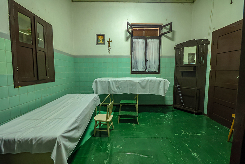 Na sala, que possui uma segunda porta, esta de acesso ao ambiente íntimo (sala de estar, cozinha, quartos e toaletes), permanecem as macas sobre as quais os pacientes se deitavam. Há ainda outra mesa de apoio, uma cadeirinha, escadinha para facilitar o acesso às macas, a pia para a higiene das mãos, e um móvel em madeira no qual há uma pequena gaveta. Era nesta que as pessoas poderiam, após o atendimento, deixar algum valor em retribuição pela massagem. “O pai nunca cobrou ou fixou qualquer valor, mas deixava livre para quem quisesse deixar alguma contribuição. Muitos, os com poucas posses, ou mais pobres, claro, nem deixavam, e isso em nada mudava a forma profissional com que os auxiliava sempre”, recorda o filho Sérgio.