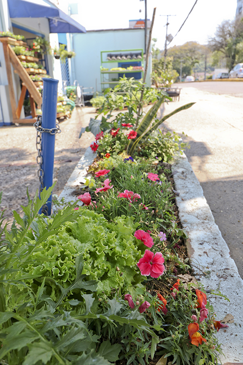 É quase impossível caminhar pela Rua Gaspar Silveira Martins, próximo ao trevo da Receita Federal de Santa Cruz do Sul, e não parar para apreciar um canteiro de flores e hortaliças rente à calçada. O jovem Marlon Willian Thiesen, 20 anos, proprietário de uma agropecuária, há três meses cultiva mais de 15 tipos de hortaliças, além de diversas espécies de flores, em um espaço com cerca de 15 metros de comprimento.