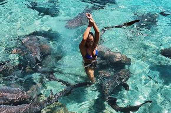 Katarina conta que após um almoço na região de Staniel Cay, viu um grupo de pessoas fazendo mergulho com snorkel e interagindo com o grupo de tubarões que estava na água e aquilo capturou sua atenção. A família do namorado bem que tentou avisar que não era uma ideia muito boa, mas a estudante fez questão de entrar na água para tirar algumas fotos com os tubarões.