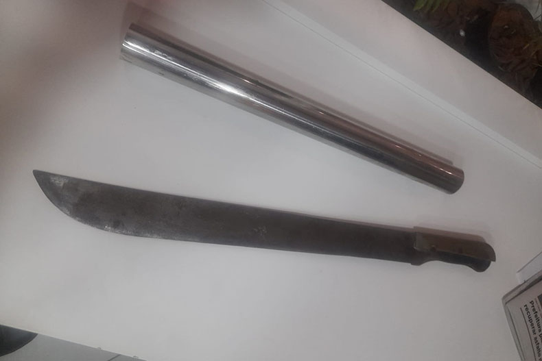 Ao chegar no imóvel indicado, os policiais flagraram um jovem de 25 anos sendo contido pelos vizinhos, depois de agredir fisicamente seu avô de 75 anos com um facão e um pedaço de ferro. O jovem foi preso em flagrante. Ele estava bastante alterado e foi necessário o apoio de outra guarnição para auxiliar na ocorrência, até que o rapaz fosse algemado.