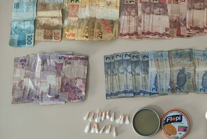 Após a ordem de parada, o caroneiro desceu da motocicleta e saiu correndo em direção a uma área de mata. No entanto, ele foi alcançado no momento em que tentava se desfazer de uma embalagem metálica, que continha 16 porções de cocaína. No bolso da bermuda foram localizados mais R$ 577,00 em notas de vários valores.